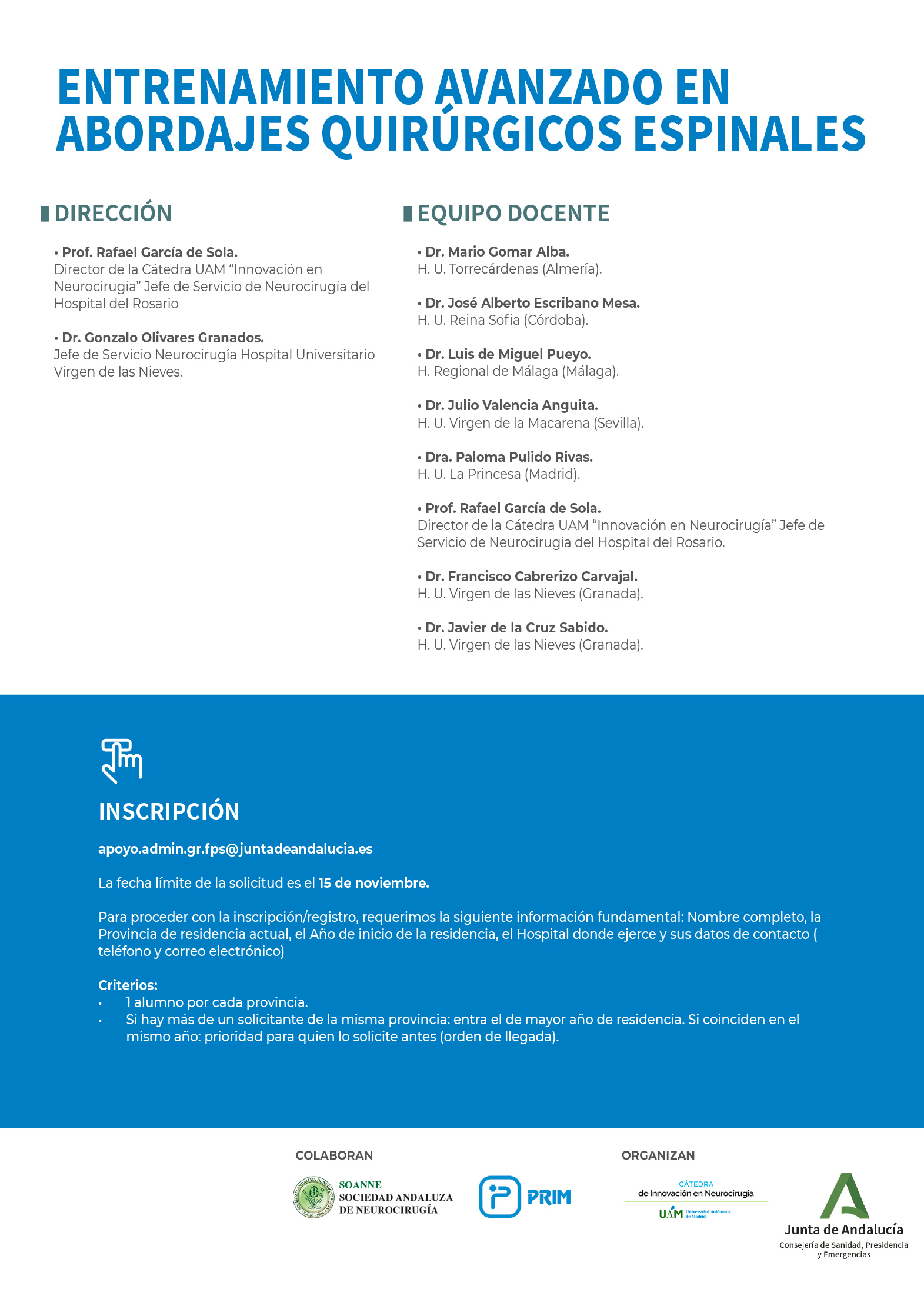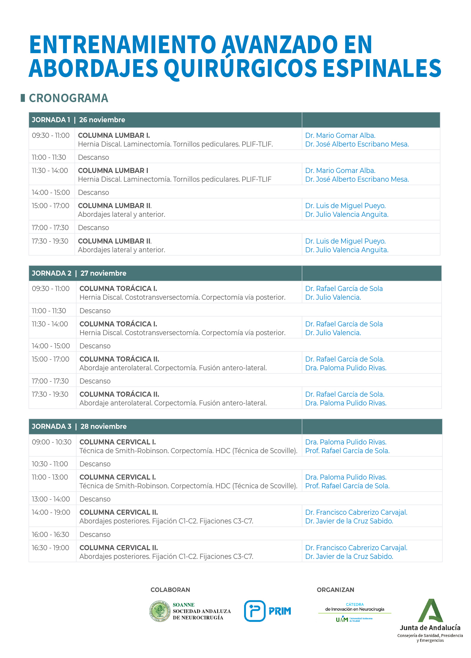 II EDICIÓN – ENTRENAMIENTO AVANZADO EN ABORDAJES QUIRÚRGICOS ESPINALES